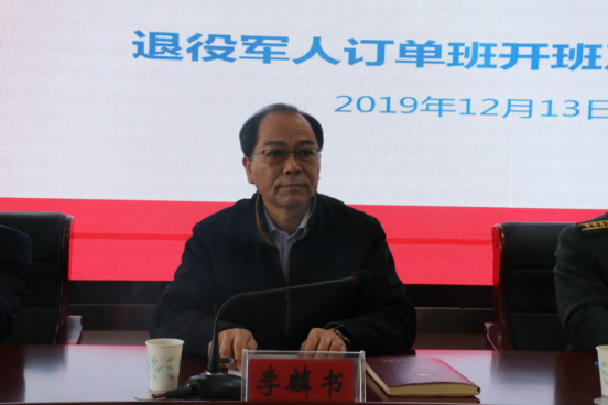 开班仪式上,李麟书致欢迎辞。他对六安市委市政府、军分区长期对学校关心和支持表示感谢,对学校和长江精工多年来的互相信任和支持表示赞赏。李麟书指出,产教融合、校企合作是职业院校推进校企改革、服务地方经济发展的一项重要工作,更是贯彻落实党和国家有关职业教育政策的具体举措。多年来,学校与以长江精工为代表的一批六安本地知名企业广泛合作,为六安地方经济发展提供了一大批技术技能人才。李麟书强调,党的十八大以来,以习近平同志为核心的党中央高度重视退役军人工作,习近平总书记多次就退役军人工作作出重要指示,为做好退役军人工作提供了根本遵循。今天退役军人订单班开班,也是学校关爱退役军人、主动服务退役军人的一项重要成果。李麟书希望,订单班的同学退伍不褪色,继续发挥部队优良传统和作风,珍惜机会、学会坚持、学会创新,成为学校的优秀校友、企业的优秀职工、社会的栋梁之才。
