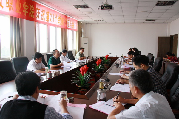9月6日,学院召开2013级新生军训工作专题会议,部署新生军训工作。院领导朱德明、冯伦久、丁守宝出席会议,承训部队代表、组委会全体成员及2013级新生班主任参加会议。院党委副书记、军训工作组委会主任朱德明主持会议。