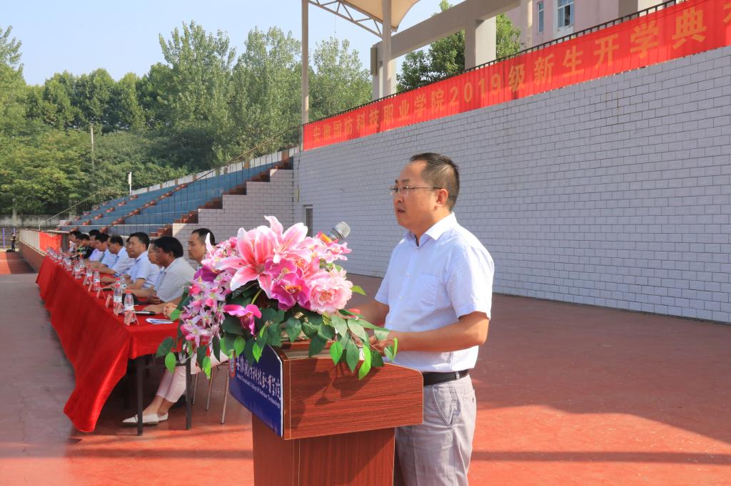 校长李麟书首先致辞。他代表学校对2019级全体新生的到来表示最热烈的欢迎。他向同学们介绍了万象城官网近年来取的成绩。他指出,大学是人生的转折点,也是梦想的新起点。他希望,同学们志存高远,坚定理想信念;勤于学习,练就过硬本领;牢记使命,增强责任担当,努力使自己成长为德智体美劳全面发展的社会主义建设者和接班人。