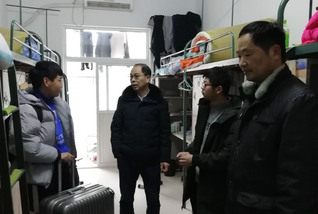 1月15日上午,校长李麟书、副校长冯伦久、学生处(安全保卫处)处长孙良平及宿管科相关负责人等一行人深入学生宿舍,对各学生公寓学生离校情况进行查看。