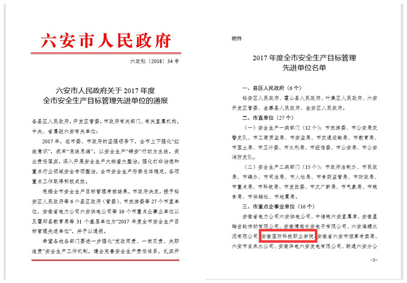 在平凡的岗位上做出不平凡的成绩,2017年注定是个不平凡的一年。全体职工在孙良平处长的带领下,学生处安全保卫处、人武部荣获了六安市2017年度六安市安全生产工作先进单位、2017年度六安市综治合格单位、2017年度征兵工作先进单位、2017年全国“国防特色学校”等荣誉称号。学生处学生资助中心成功发放国家奖助学金508.15万元、学院奖学金64.4284万元、勤工助学金88.3357万元、困难补助21.77万元、社会资助2.8万元,更在2017年安徽省高校学生资助高职、中职民生工程绩效考核中均荣获优秀等次。