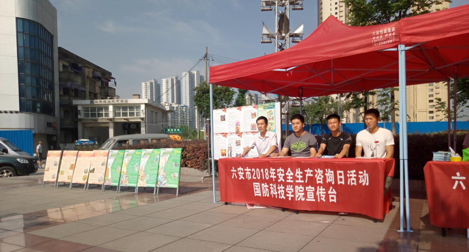 6月15日,万象城官网分别在六安市皋城广场和校内开展2018年“安全生产月”宣传咨询日活动。