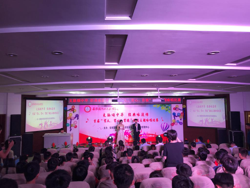 现场参赛选手们结合自己展示的节目内容认真挑选了服饰,今风古韵各不同,加之表演形式上丰富多样,得到评委和观众的赞赏,不时报以热烈的掌声。选手们在曲目的选择上各具特色,有古风叠韵,绿树绕村庄,水满坡塘,倚东风,豪兴徜徉的《行香子》;有仰望星辰大海方向,肩上扛着使命荣光,背上行囊,争做新时代出彩少年的《强国一代有我在》;有荡气回肠,把酒言欢,豪言壮语“天生我材必有用,千金散尽还复来”的《将进酒》,等等。在舞台上,选手们展现着激情与梦想,传递着青春的激情和正能量,他们或慷慨激昂,或深情款款,或甜美动听,情感真挚的表达极富穿透力和感染力,撼动着每一位在场的观众。比赛随着全体参赛选手大合唱《明日歌》完美落幕。16空乘1班吴微同学表演的《月满西楼》、17会计1班苗远远和17汽检2班年伦同学表演的《行香子》拔得头筹。
