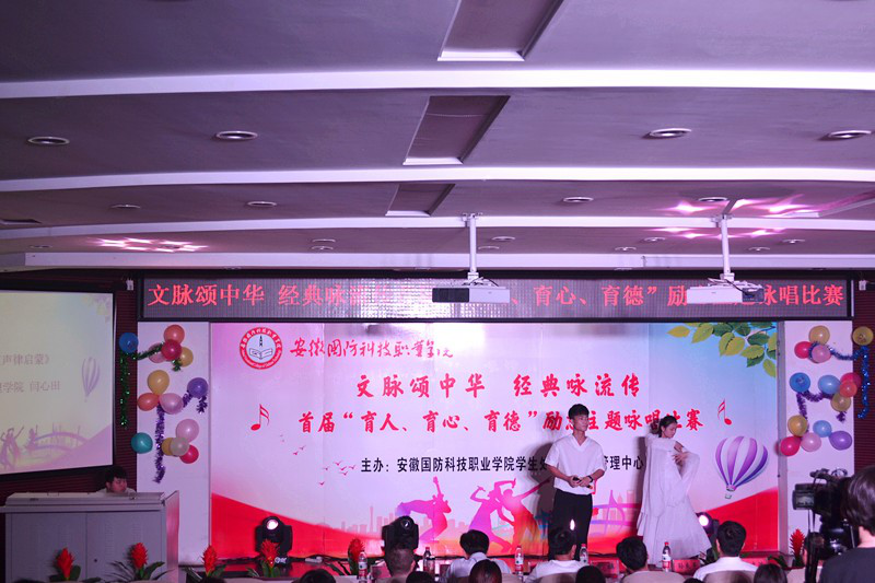 为深入推进学校学风建设年工程开展,进一步加强资助助学和育人功能并举,强化资助政策的宣传力度,6月3日下午,由校学生处主办的“文脉颂中华 经典咏流传首届‘育人、育心、育德’励志主题咏唱”大赛在学校图书馆报告厅成功举办,来自各二级学院的十组选手参加了此次比赛。大赛邀请了校党委委员、宣传部部长、思政部主任袁旗,学生处(安全保卫处)处长孙良平,安全保卫处副处长韩纪平,学生处副处长张志鸿,城市建设学院党总支副书记叶启衡,信息技术学院党总支副书记杨庆颖,汽车技术学院党总支副书记余桂刚,学生处资助管理科科长杨超等担任评委。150余名观众现场观看了比赛。