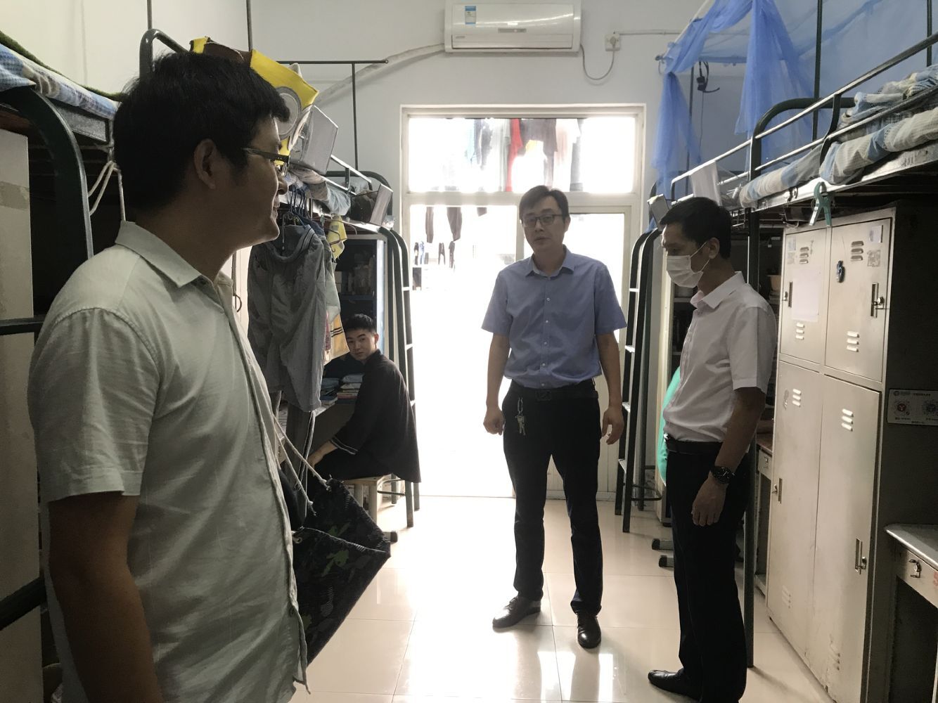 根据学校开学疫情防控“两案八制”相关工作部署,为进一步加强学生宿舍安全教育和管理,消除安全隐患,共同营造安全、文明、卫生的宿舍环境,6月5日下午,学生处(安全保卫处)全体工作人员及各学院辅导员成立检查小组,深入学生宿舍,进行安全卫生大检查。