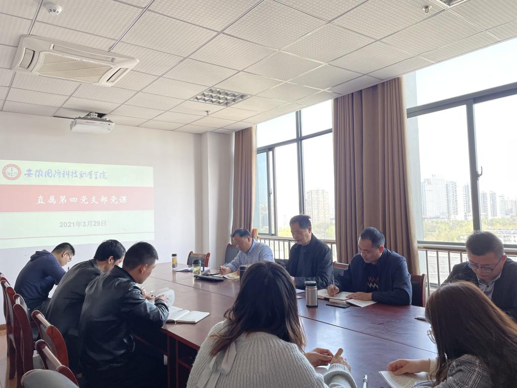 3月29日上午,直属四支部在秉心楼1012会议室召开党史学习教育会议,全体党员、预备党员、培养对象参加会议。会议由支部书记孙良平主持。