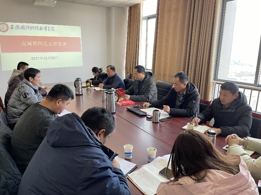 12月28日下午,直属第四党支部在秉心楼10楼党员活动室召开支部党课学习会议,由支部书记孙良平同志讲课,全体党员以及预备党员参与了此次会议。