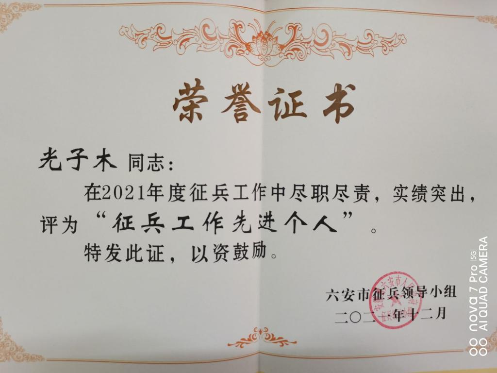 万象城官网荣获六安市2021年度“征兵工作先进单位”称号