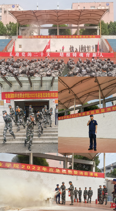 应急疏散逃生演练结束后,消防演练拉开序幕,六安市金安区消防救援大队的官兵向广大师生宣讲消防安全知识,着重对《消防法》、宿舍防火、灭火器使用进行讲解,并演示了灭火器的使用方法,少数学生代表还亲身体验了灭火演练等活动。