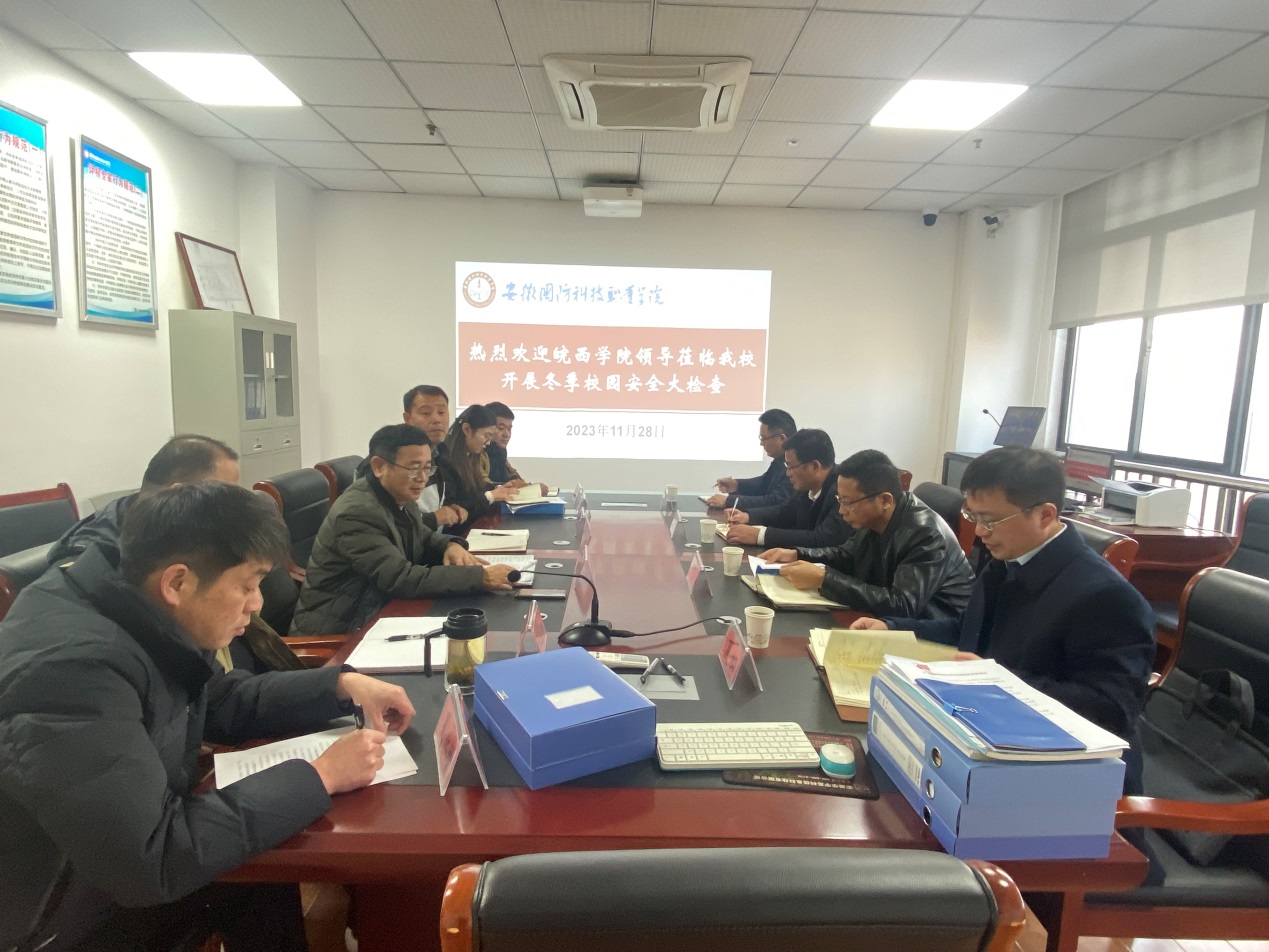 为深入学习贯彻习近平总书记关于安全生产的重要论述和对吕梁“11·16”重大火灾事故的重要指示精神,根据《六安市学校安全生产专项领导小组关于开展2023年全市学校冬季安全隐患大检查大整改的通知》要求,11月29日下午,皖西学院保卫处处长李光耀、后勤保障处处长何育华、实验实训教学管理部副主任夏松、保卫处消防科科长陈孝宇来校开展冬季安全大检查,万象城官网学生处(安全保卫处)处长孙武、总务处副处长张伟业(主持工作)、学生处副处长张志鸿、安全保卫处科长杨振亚、教务处科长叶金芝、总务处干事夏业增陪同检查。