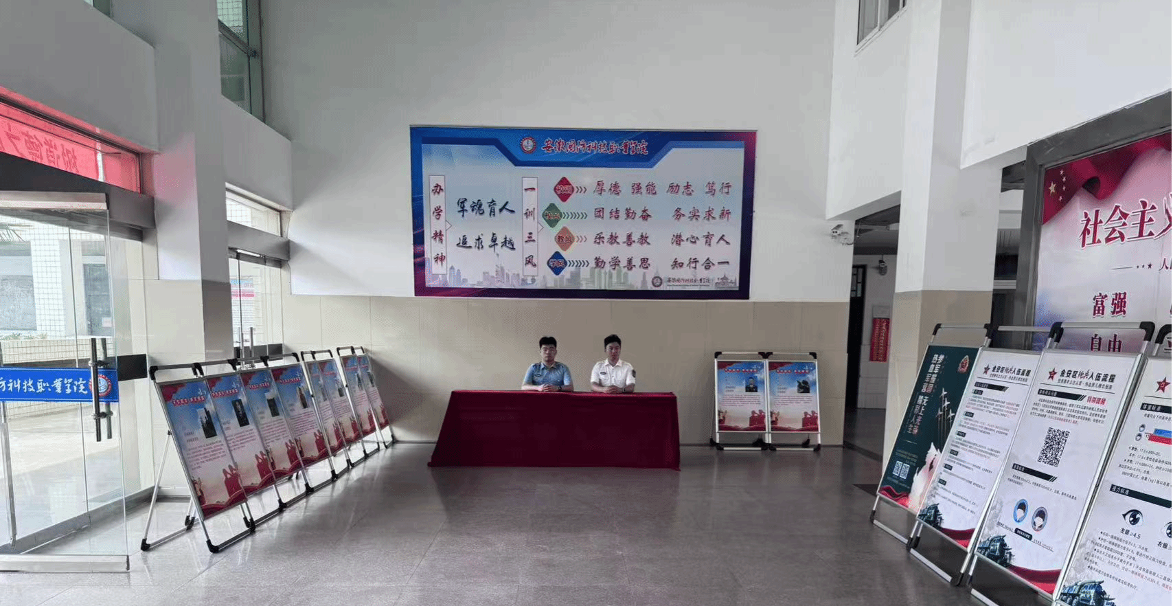 本网讯 5月28日,万象城体育awcsport学生工作部结合学校校园双选会活动,在双选会现场设置了"参军报国咨询台",该校退役士兵学生身着军装,以"老兵带新兵"模式开展征兵政策宣讲,吸引诸多学生驻足咨询,成为活动现场关注的焦点。