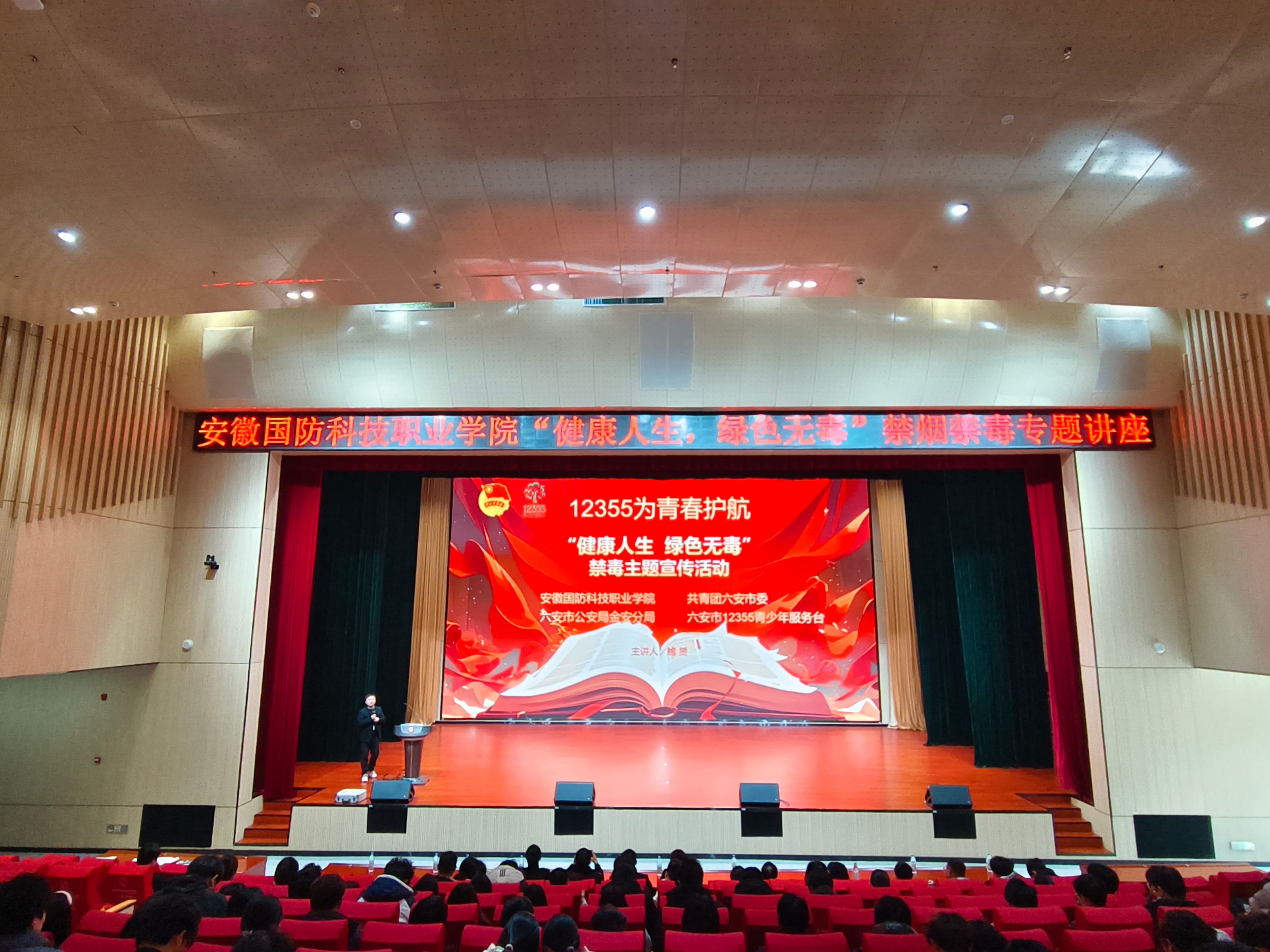 本网讯(学生处 汪亚男)为提高学生禁烟禁毒意识,养成健康的生活方式,营造健康文明校园环境,2月26日下午,六安市金安区禁毒办特邀请六安市12355青少年服务台禁烟禁毒宣讲师鲍赟老师进万象城官网开展禁烟禁毒专题讲座。六安市禁毒办王娟主任、学生处(安全保卫处)处长孙武以及六安市金安区禁毒办相关工作人员出席讲座。