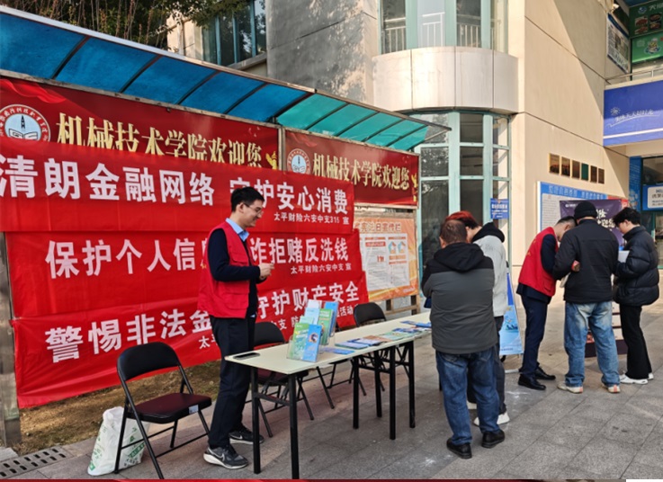 活动当天,学校安全保卫处与太平财险公司的工作人员在校园内设立了宣传咨询台,通过悬挂横幅、发放宣传折页、现场讲解及互动问答等多种形式,向过往师生普及金融安全知识。