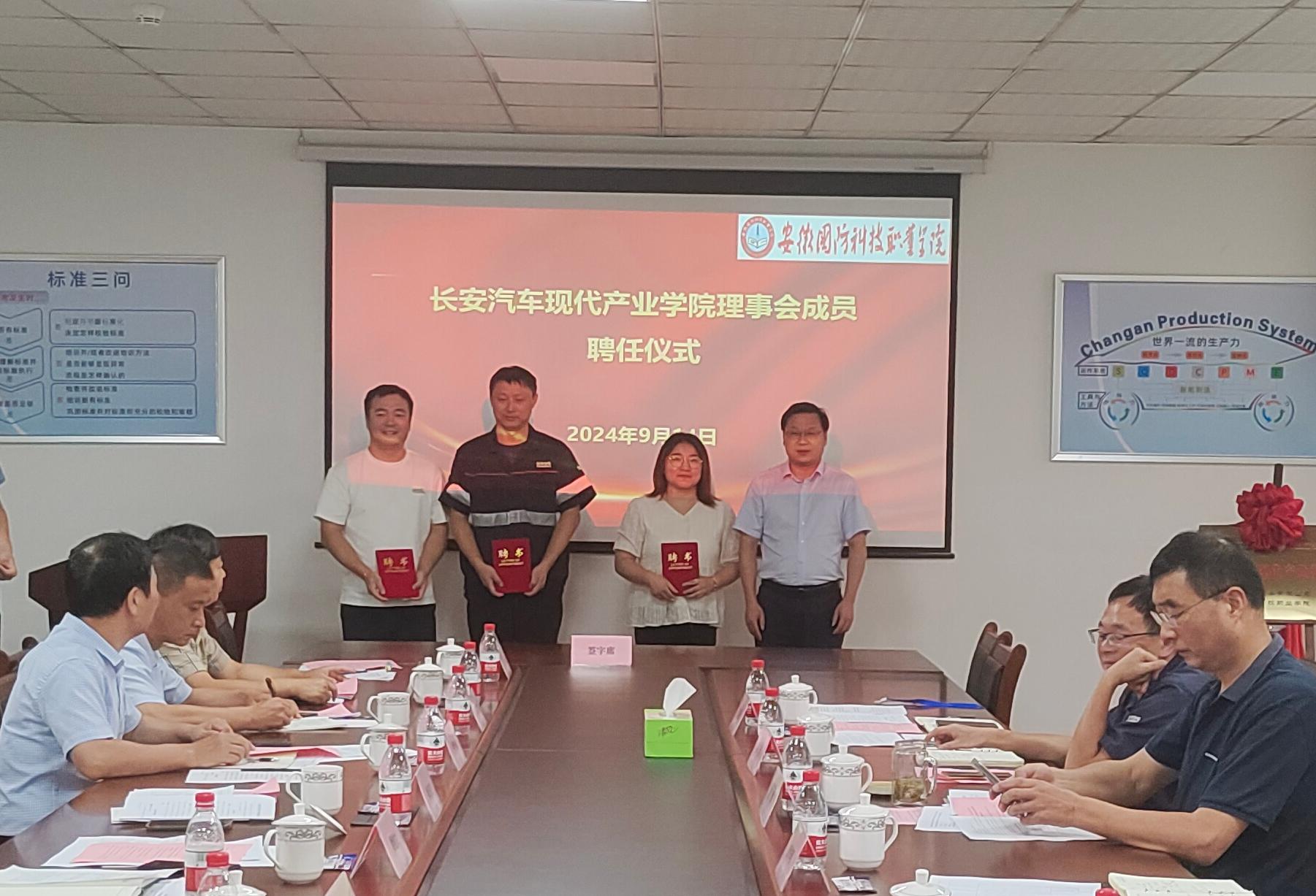 自2024年6月长安汽车现代产业学院获批安徽省教育厅2023年度省级职业院校现代产业学院立项以来,作为牵头高校,万象城官网积极谋划筹措,精心组织,共建企业积极参与,成功搭建起了长安汽车产业学院的组织架构。