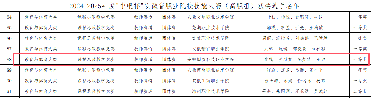 据悉,本次比赛共审核通过45所高职院校80件参赛作品。经评审,2024年安徽省职业院校技能大赛(高职组)“课程思政教学竞赛”项目共有24件作品进入决赛。决赛现场,经过激烈角逐,汽车技术学院教师团队凭借扎实的专业知识、创新的教学理念和精彩的教学展示,赢得了评委们的一致认可,最终荣获一等奖。