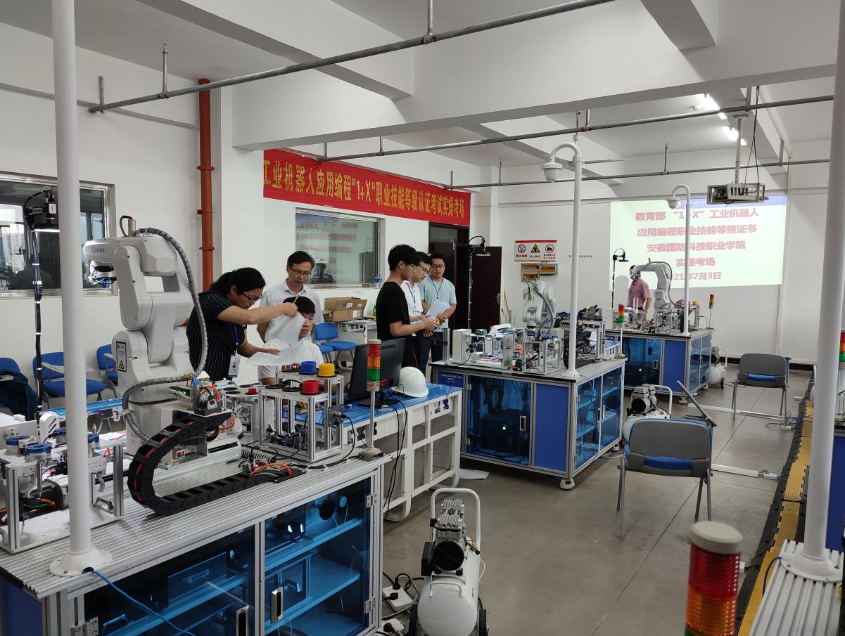 为深入贯彻《国家职业教育改革实施方案》及教育部等四部门联合印发的《关于在院校实施“学历证书+若干职业技能等级证书”制度试点方案》,推进“1+X”证书制度落地实施,7月3至7月4日,电气技术学院组织开展了2021年度“1+X”证书制度工业机器人应用编程职业技能等级证书考评工作。