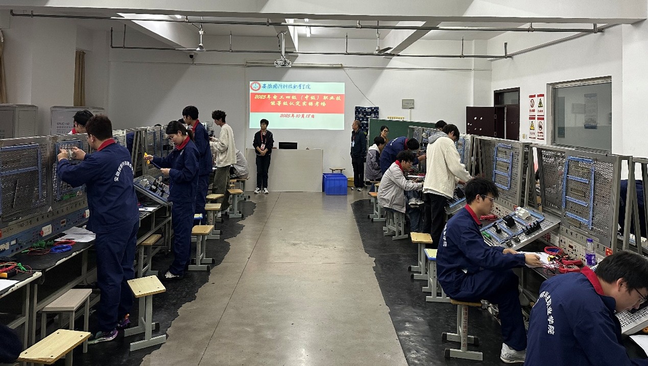 本网讯(电气学院 侯超群) 为进一步推进落实职业技能等级评价制度,推进“课证融通”,有效提升学生的职业技能水平,结合2025年下半年教学工作安排,电气技术学院于10月18日-19日组织完成了电工(四级)职业技能等级考评工作。