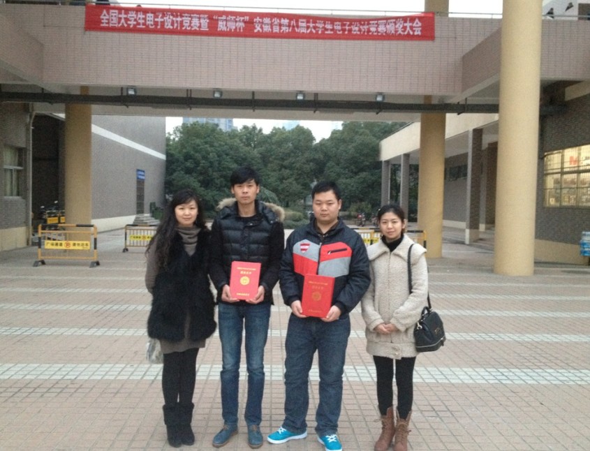 12月14日,2013年“威师杯”安徽省第八届大学生电子设计竞赛总结暨颁奖大会在中国科学技术大学举行,我院指导老师代表向楠、邹莉与获奖学生代表出席了颁奖大会。