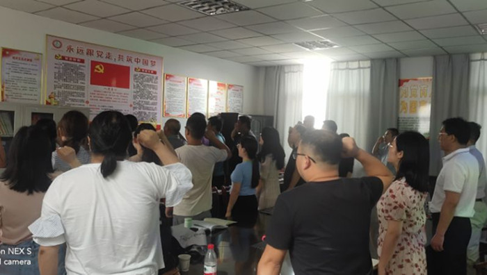 会议开始,为迎接党的101岁生日到来,进一步增强广大党员的党性观念,张宗江同志带领全体党员重温了入党誓词。