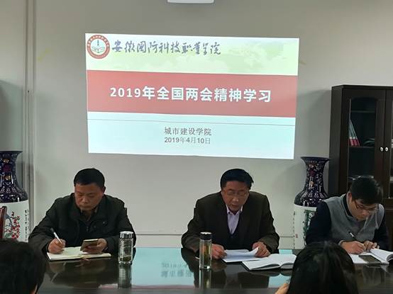 4月10日下午,城市建设学院召开全体党员会议,传达学习全国两会精神。学校党委副书记、纪委书记朱德明参加会议。会议强调,要以习近平新时代中国特色社会主义思想为引领,按照学校党委的部署要求,把握精准要义、聚焦重点工作、练就过硬本领,认真贯彻落实两会精神,为实现学校“一高一优”建设发挥应有的作用。