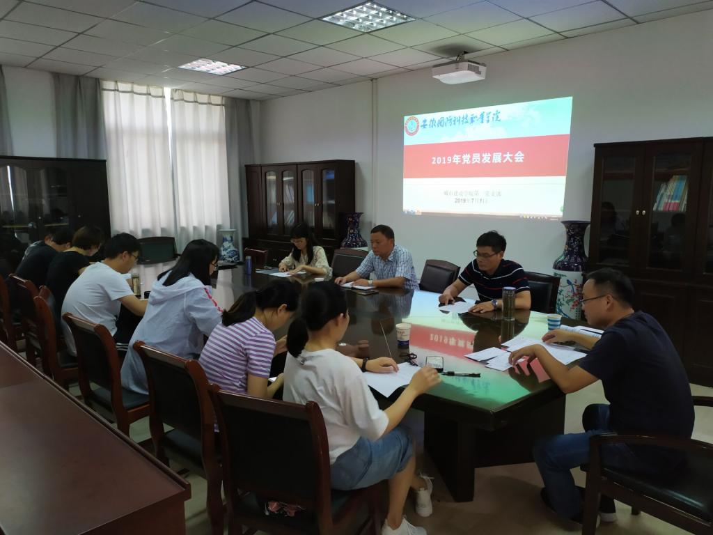 7月1日下午,城市建设学院第一党支部在学院党员活动室召开党员发展大会,城市建设学院院长张显国等8名正式党员和3名发展对象参加了此次大会,大会由支部书记黄波主持。