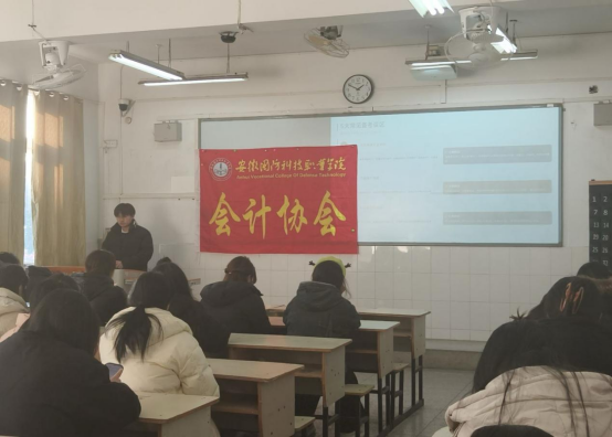 活动邀请通过初级会计职称的学生宁腾龙来进行详细讲解,主持人简明扼要地介绍了初级会计考试的基本情况与关键报名时间节点,为同学们搭建起对考试的整体认知框架。随后,宁腾龙登台分享,围绕报名流程、报考条件、材料准备及常见误区展开细致讲解,同时结合自身备考实战经验,总结出一套实用的学习方法与避坑技巧。他着重强调:“报名是考试的第一步,信息填写务必准确;备考则贵在坚持与方法,合理规划时间,善用真题与错题本是关键。”精准贴合同学们的实际备考需求。活动现场,同学们全程专注听讲、认真记录。不少同学在会后反馈,本次活动分享的备考时间分配等建议实用性极强。