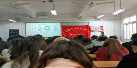 为了更好地了解会计职业资格认证相关知识,准确进行职业规划设计,会计协会于2021年12月20日下午在二教108教室举办以初级会计师考证为主题的专题讲座。本次讲座由协会指导老师张文君主讲,参会人员有会计协会会长、副会长、各部门部长、部门成员与会计专业各班级学生。