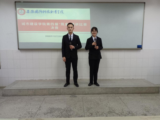 2020年12月25日下午,为推进学院“一院一品”建设,促使学生树立正确的专业目标,帮助学生规划好自己职业生涯,让学生树立正确的道德观、价值观、人生观,落实学分制管理办法,实现人才培养目标,城市建设学院举行“职业与理想”为主题的专业理想演讲比赛。城市建设学院党总支副书记叶启衡,团总支书记张凤,辅导员罗丞筠、康垚以及团总支学生会主席团成员应邀担任评委。