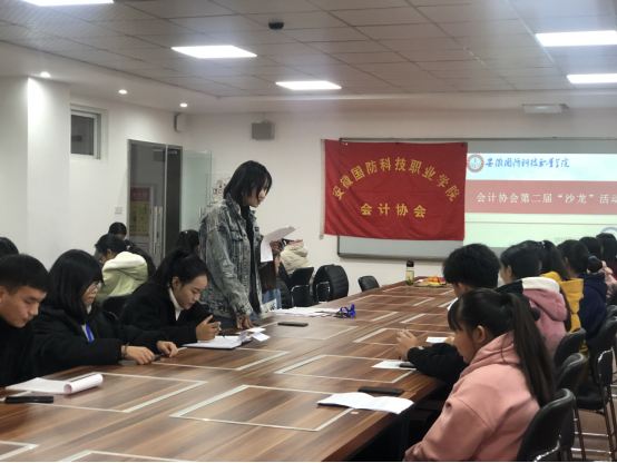 (城市建设学院赵之元)为丰富大学生社团活动形式,进一步推动城市建设学院一院一品活动的顺利开展。2019年12月13日,一场以“会计诚信”为主题的沙龙活动在实训楼601开展。参与此次活动的主要有会计专业教师陈泽玉、赵之元,会计协会成员以及其他对本次主题感兴趣的同学。