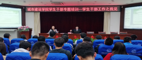 为了进一步加强学生干部队伍的建设,2017年11月1日晚上七点半,我院特邀院党总支副书记叶启衡在图书馆报告厅为学生干部们进行了“学生干部工作之我见”的专题培训。培训由院团总支书记张凤主持,院全体学生干部参加了此次培训。