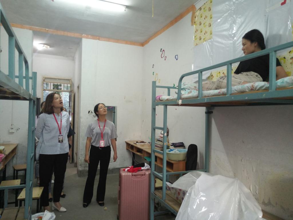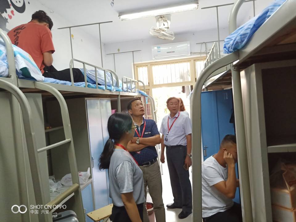 从迎新现场出发,学院领导先后走访了新生入住的第四和第五号学生公寓。每走进一间宿舍,学院领导都会就宿舍卫生、住宿管理、安全隐患等问题与同学们亲切交流询问他们的家乡情况、开学准备状况及寝室居住情况,听取了大家对宿舍生活服务设施的意见和建议,并语重心长地勉励大家勤奋学习,积极向上,养成良好的行为习惯,提高安全意识,营造良好的寝室文化氛围