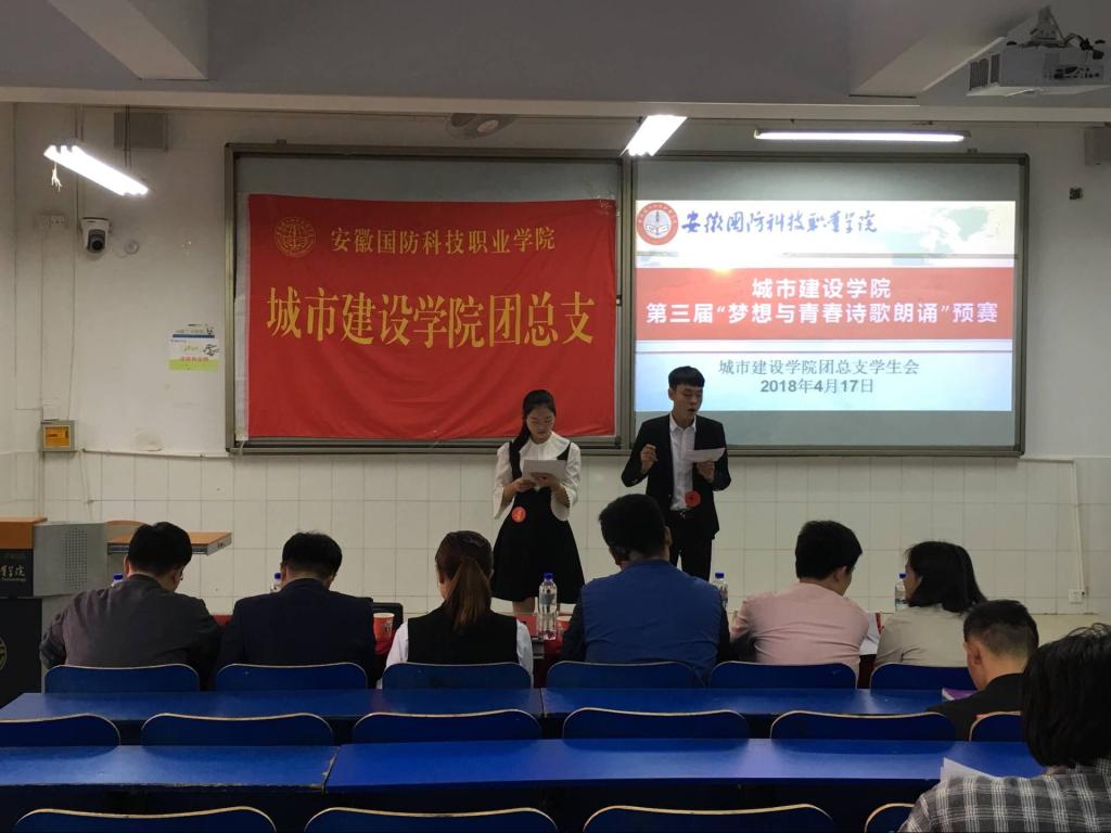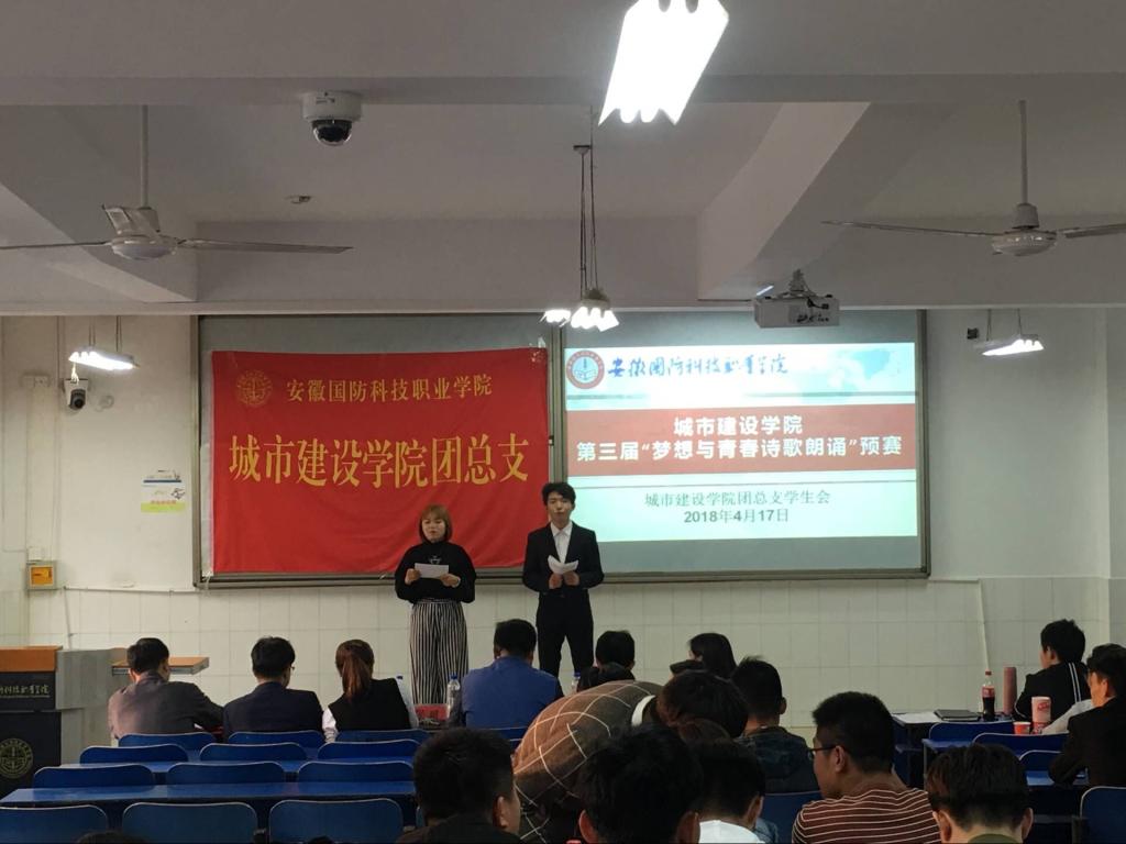 4月17日,为了宣传社会主义核心价值观,传承中华优秀传统文化,提升我院朗诵水平和语言素养,城市建设学院在二教105教室隆重举行第一届“梦想与青春”诗歌朗诵比赛。