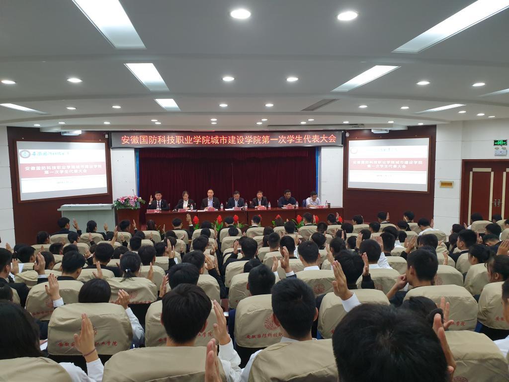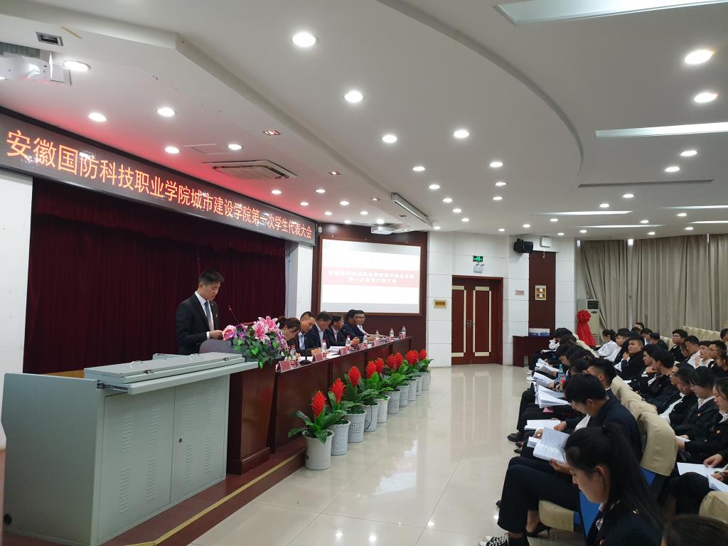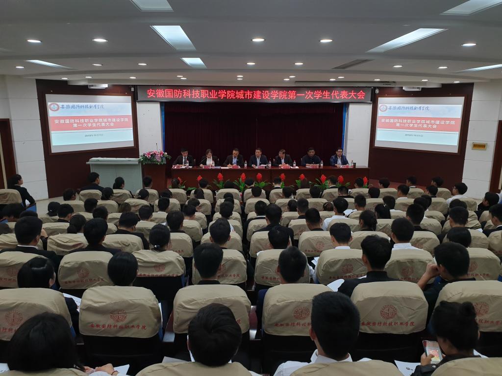 2019年11月1日,在庄严的国歌声中,万象城体育awcsport城市建设学院第一次学生代表大会在校图书馆报告厅隆重召开。城市建设学院院长张显国,党总支副书记叶启衡,校团委副书记张红军,学院办公室主任黄波,校素质拓展中心主任雷雨出席此次会议,学院各年级辅导员,院属各班班主任以及全院140名学生代表共同参加会议,会议由城市建设学院团总支书记张凤主持。