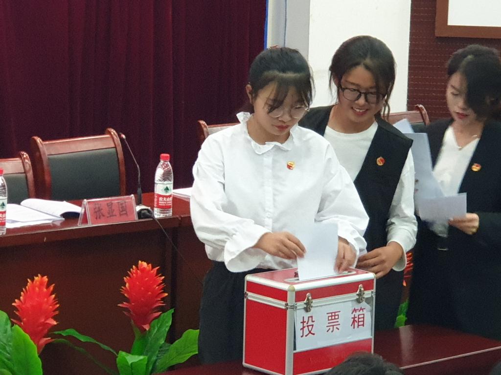 最后,张显国致闭幕词,他首先对大会圆满完成各项议程及对当选的新一届学生委员会委员表示祝贺,对上一届学生会一年来的辛勤工作所取得的成绩予以肯定。希望新一届当选的学生会主席团成员抓住当下国家和学校发展的大好形势,切实增强“四个意识”,树立“四个自信”,做到“两个维护”,在学院党总支的领导下和院团总支的具体指导下,在全院广大青年的积极支持下,把自己的个人理想融入到为祖国和人民服务的理想信念当中,展现青春面貌,实现青年价值,推动学院各项工作再上新台阶。