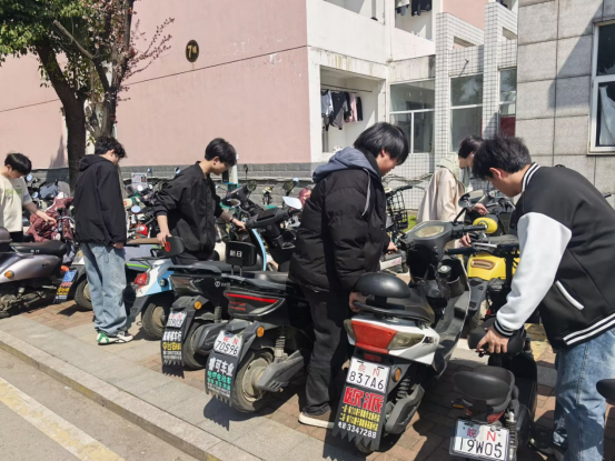 3月7日,志愿者们手持清洁工具深入操场、绿化带等卫生死角,重点清理塑胶跑道缝隙中的烟头、草丛中的包装袋等细微垃圾。“这些卫生死角就像校园的‘盲肠',需要我们定期维护。”活动负责人陈同学表示。通过两小时的“地毯式”清理,累计清扫垃圾10余袋。3月19日针对宿舍区电瓶车乱停现象,团队采用"规范引导"模式,整理了近100余辆电瓶车、自行车。