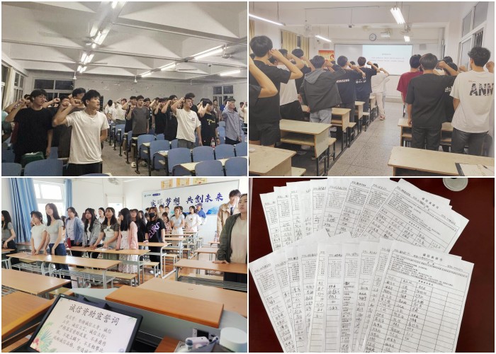 接着,各班还组织开展了诚信宣誓和签署诚信承诺书活动。在辅导员的带领下,全体同学起立进行庄严宣誓,声音铿锵有力,表明了坚定的决心与信念。随后,同学们在诚信承诺书上郑重签下自己的名字,做出诚信承诺。