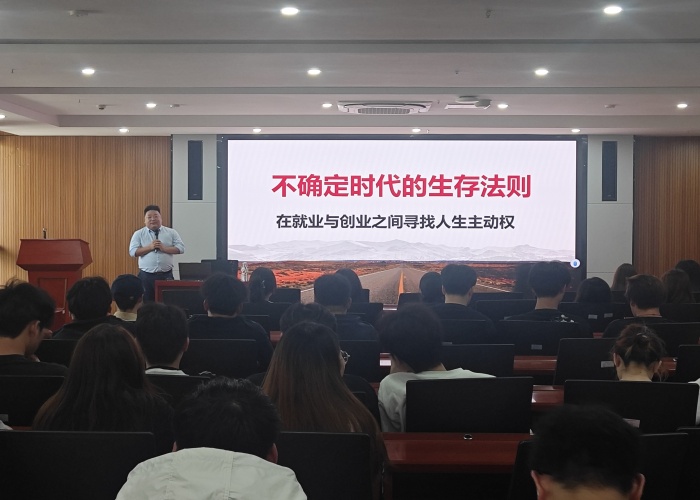 5月7日下午,为认真贯彻落实习近平总书记关于大学生就业创业的指示批示精神,城市建设学院党总支书记张宗江邀请2005届优秀校友丁培培来校,为即将离校实习的2023级学生开展就业创业讲座。丁培培,男,2005届数控技术专业毕业生,曾任职于全顺餐饮集团董事长助理、安徽梦都集团安徽区总经理等,现自主合伙创业合肥爱至堂酒店管理有限公司,具有丰富的就业和创业经历。