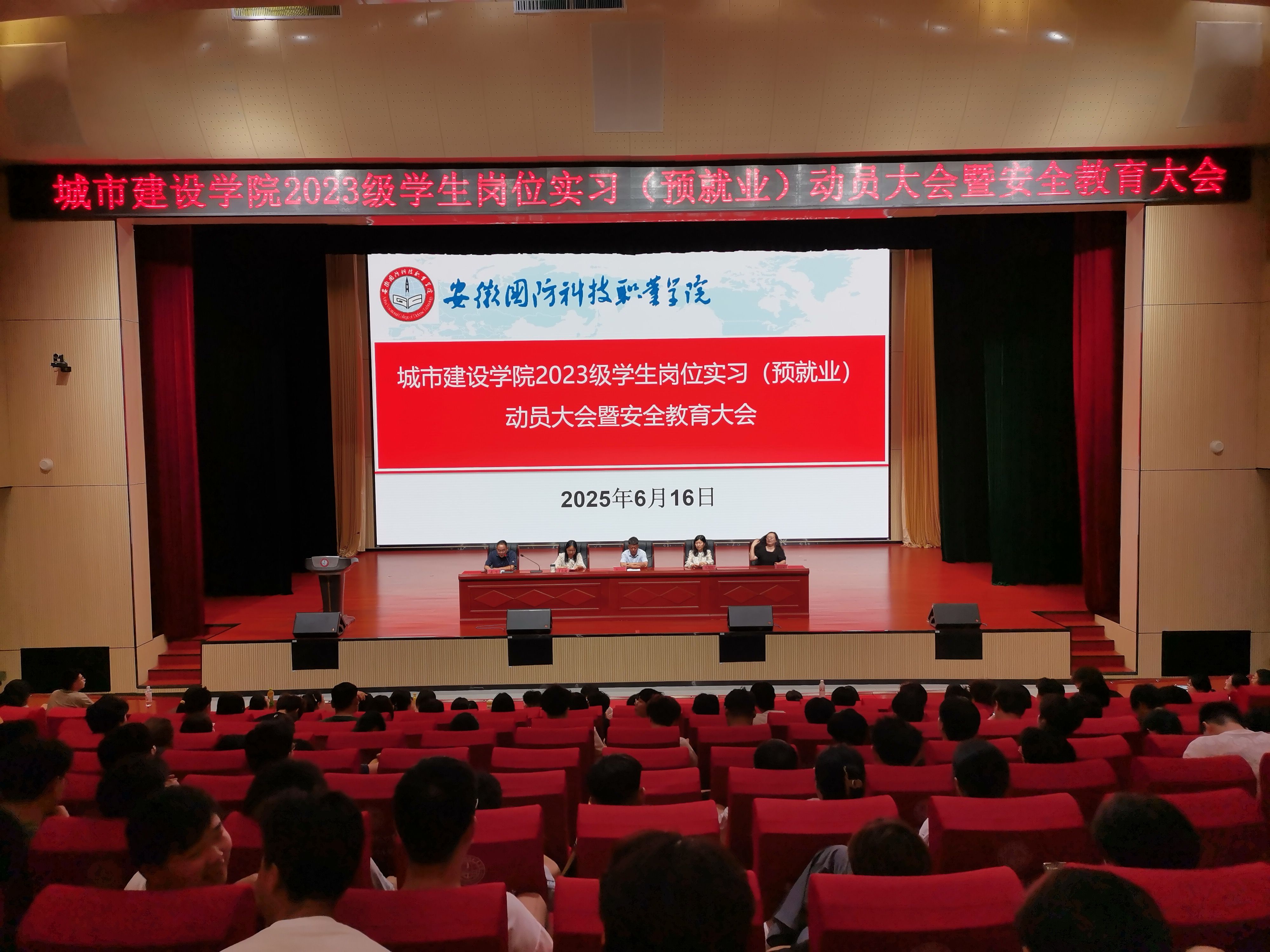 本网讯(城市建设学院 袁小永)为做好2023级学生岗位实习工作,6月16日晚,城市建设学院在产教融合中心多功能报告厅召开了2023级学生岗位实习(预就业)动员暨安全教育大会,城市建设学院党政班子成员、岗位实习指导教师、辅导员及全体2023级学生参加会议,会议由副院长左飞主持。