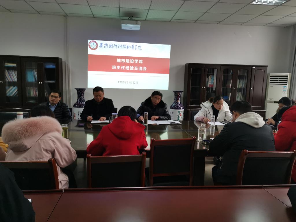 为加强班主任队伍建设,进一步强化班级管理的针对性和实效性,提高学德育工作和班级管理水平,12日下午,城市建设学院在知行楼319办公室召开班主任工作经验交流会,院长张显国、副书记叶启衡及17、18、19班主任参加了此次会议。