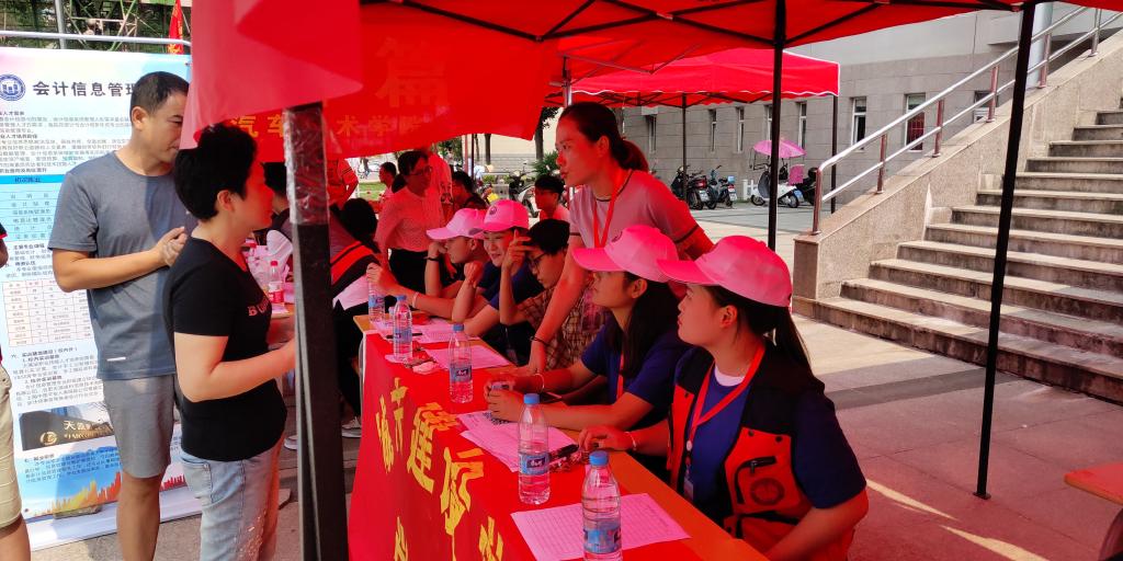 迎新当天上午7:00,城市建设学院全体教师带领选拔培训的20名志愿者,统一着装,笑脸相迎,热情接待,耐心释惑,并引导、指导新生完成迎新工作系统注册,扫码缴费,领取生活用品,专业咨询等等。现场受到学生和家长一致好评,现场气氛热烈,祥和有序。