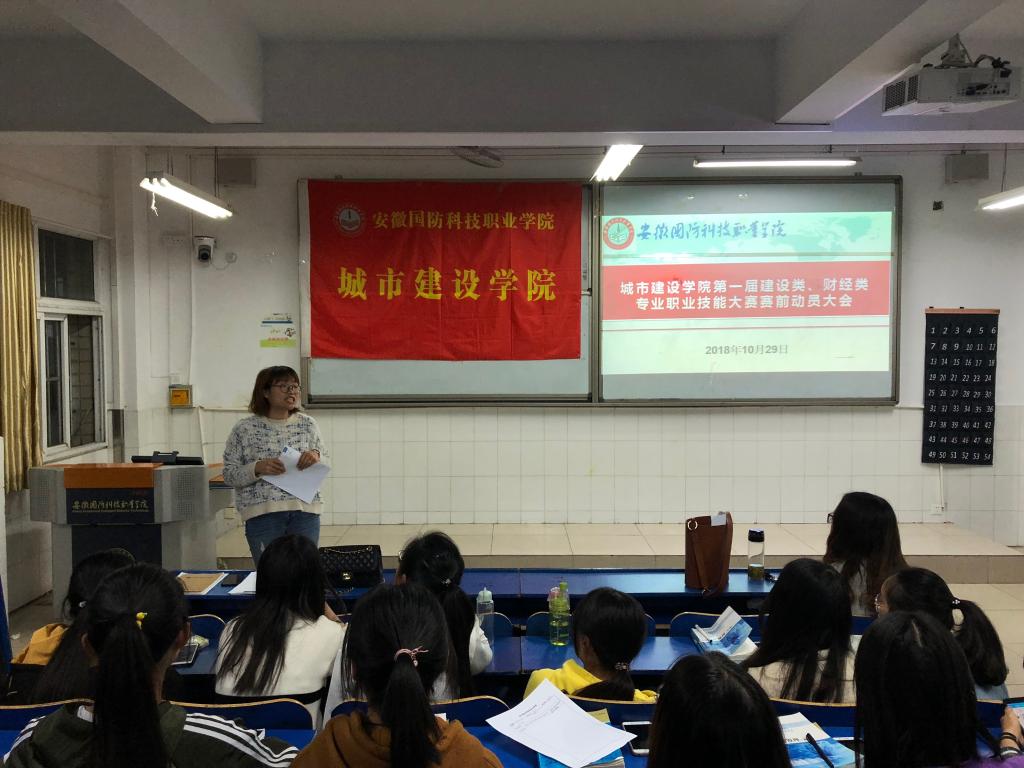 为充分做好2018年万象城体育awcsport第一届建设类、财经类专业职业技能大赛的备战工作,我院于10月29日晚上5点30分在教2楼105召开职业技能大赛赛前动员大会。 会议由学院团委书记张凤主持,会计协会指导教师赵之元、建筑工程协会指导教师程磊以及我院17、18级学生参加了本次会议。