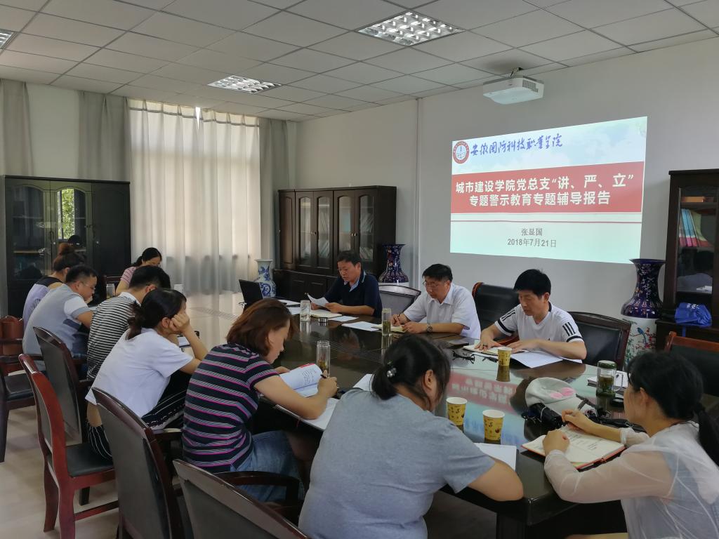 7月21日下午,城市建设学院院长张显国从“讲、严、立”专题警示教育以及这次警示教育与其它专题教育的区别的角度给全体党员做了一次辅导报告。