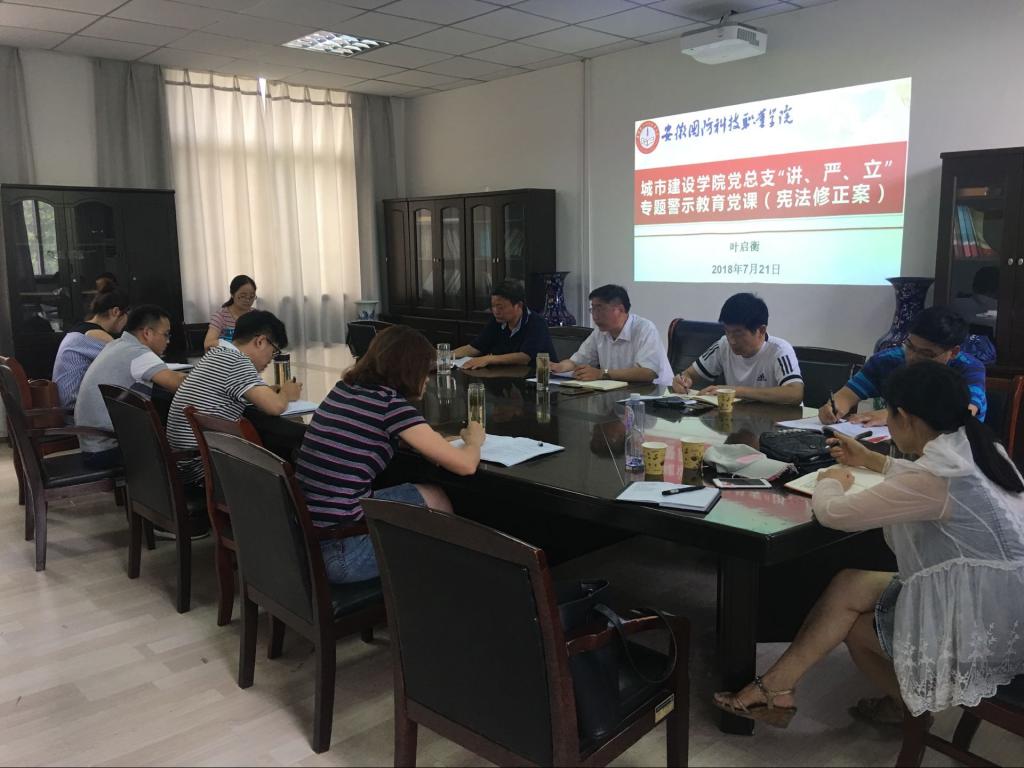 7月17日,城市建设学院召开了“讲、严、立”专题警示教育动员大会,会议由党总支副书记叶启衡主持,所有党员都参加了会议。