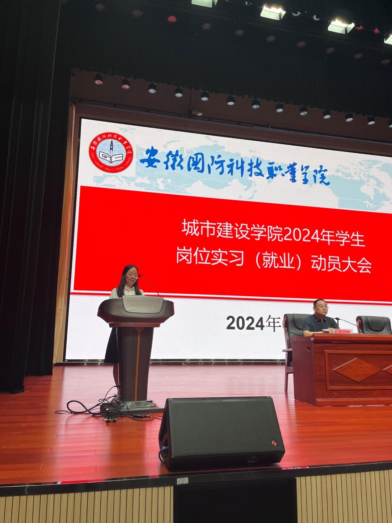 本网讯(城市建设学院 袁小永)为做好2024年学生岗位实习工作,6月12日晚,城市建设学院在学校产教融合中心报告大厅召开了2024年岗位实习动员大会暨期末安全教育和文明离校大会,城市建设学院党总支书记张宗江、院长王红林、副书记叶高洁、副院长左飞、组织员胡仕婷、辅导员、岗位实习指导教师及全体2025届毕业生参加会议,会议由副院长左飞主持。