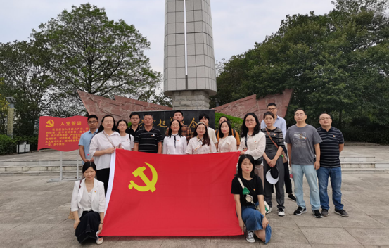 全体党员在六霍纪念碑前合影
