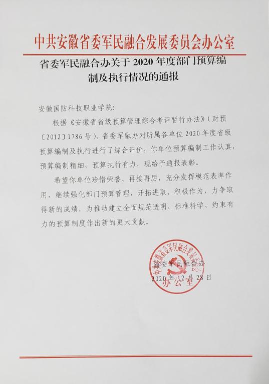 加强预算统筹 促进预算执行—学校2020年预算及执行获省委军融办通报表彰