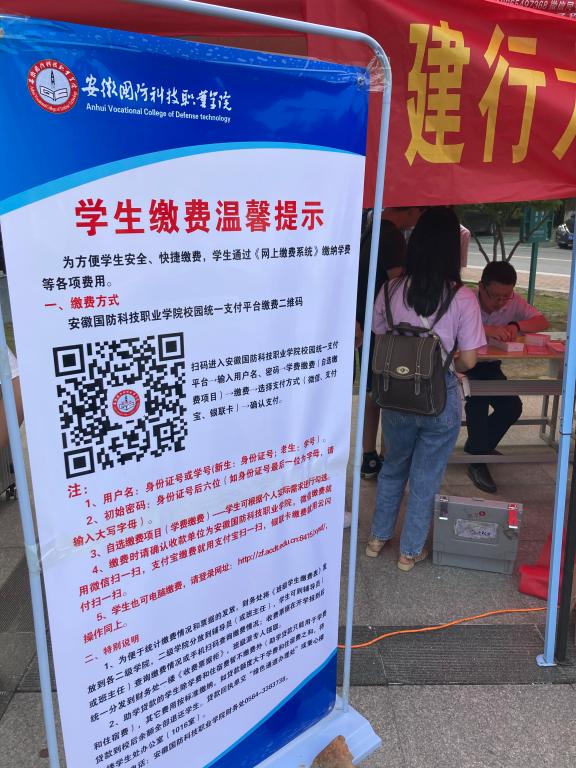 可是,在我校,出现了一群身穿整齐工作服、胸佩工作牌、年青干练、朝气蓬勃的银行工作队伍,一切井然有序,这正是建行六安人民路支行助力代收学费的工作人员。