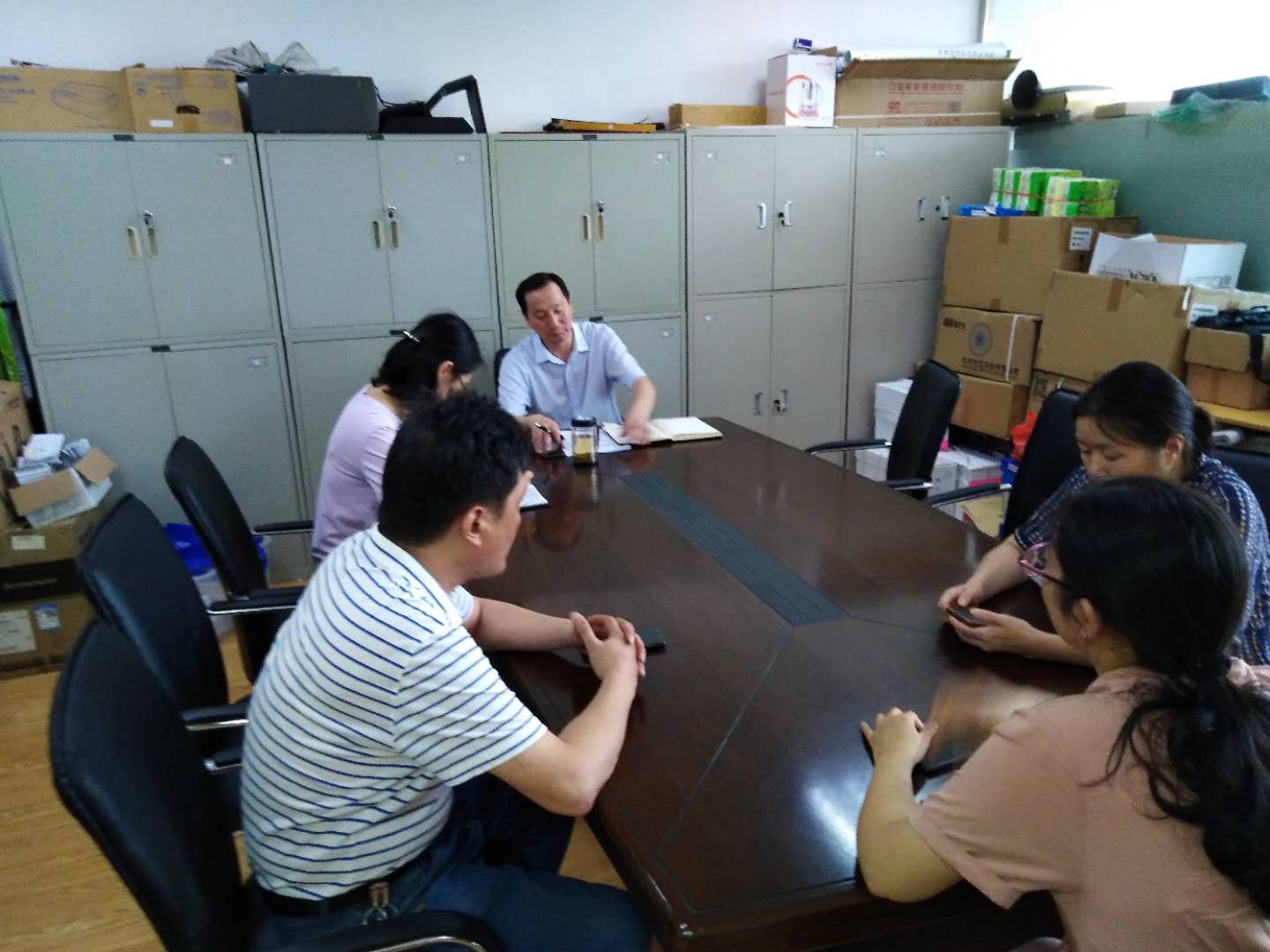 2020年8月31日,新学期开学第一天。在李大武处长主持下,全体财务处同志参加新学期工作会议。会上李大武处长总结了上学期工作内容,对财务处的上半年工作进行充分肯定,对下学期学校财务工作进行安排和指导。大家纷纷对自己上学期的工作进行自评,对下学期财务工作提出自己的建议和看法。