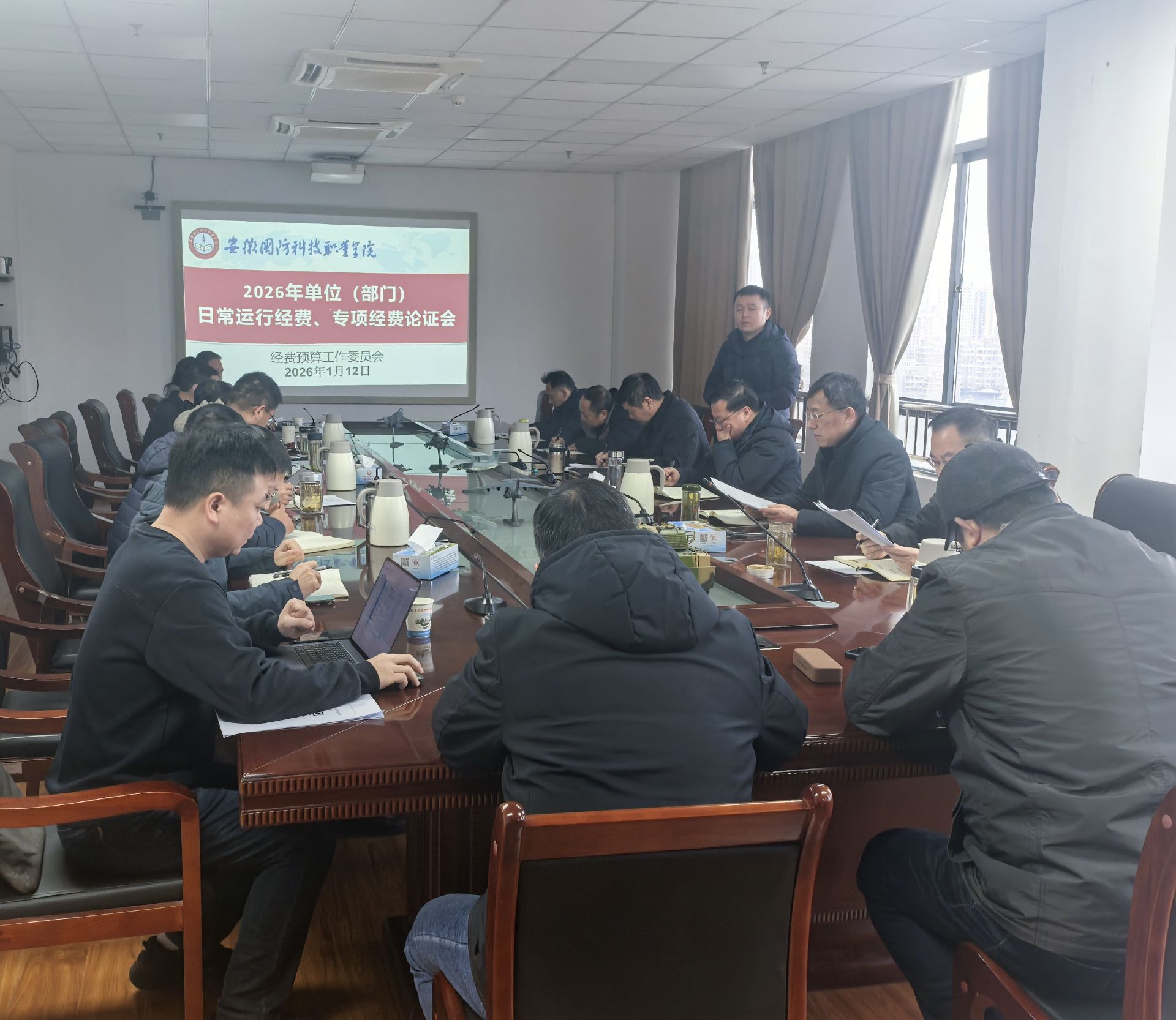 为落实26年度预算过紧日子要求,科学统筹部门运行经费与专项经费配置、规范资金的使用流程。1月12日,财务处在第一会议室召开26年单位日常经费、专项经费论证会,由党委委员、副校长袁旗主持。