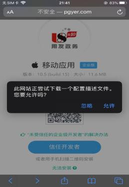苹果手机用户点击允许后,需要在进入手机:设置-通用-描述文件